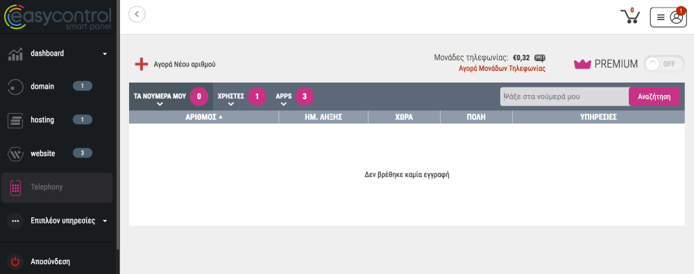 Έχετε τη δυνατότητα να δείτε πληροφορίες για τον αντίστοιχο τηλεφωνικό σας αριθμό, να τον διαχειριστείτε και να αγοράσετε καινούριο:
